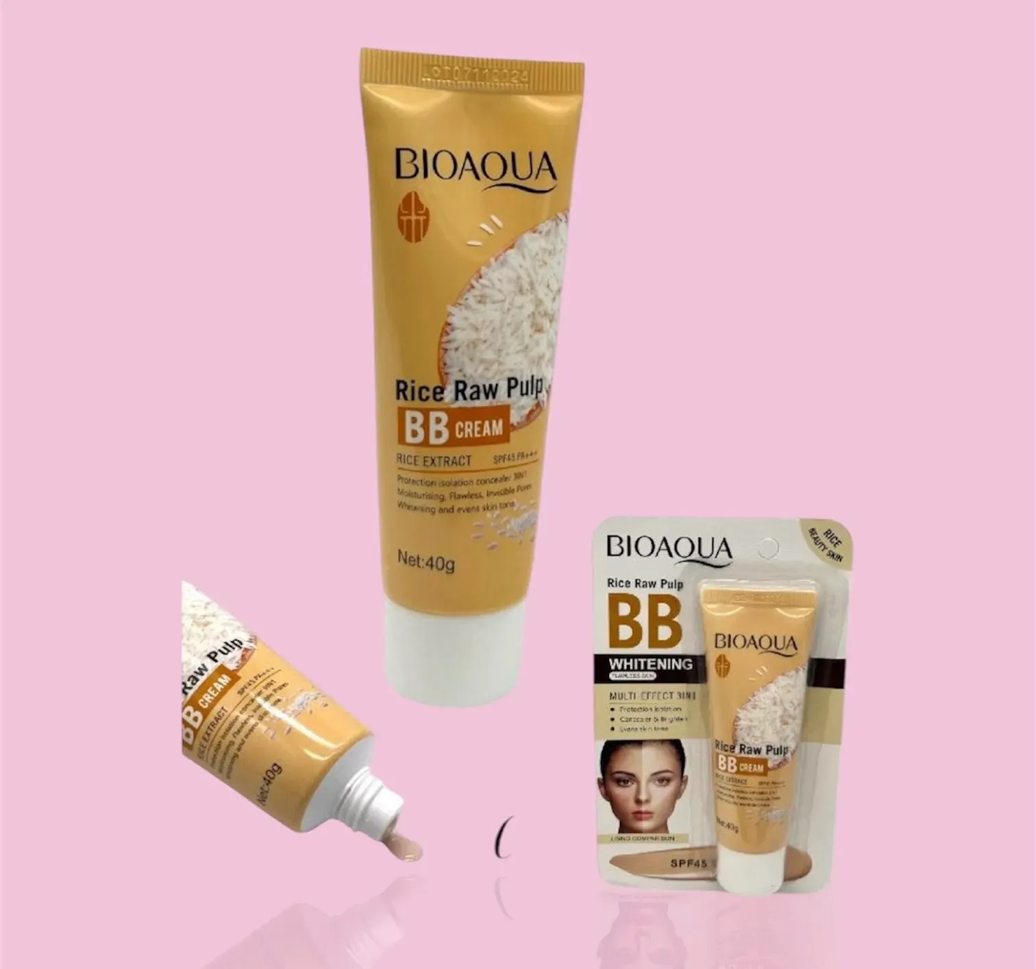Base bb crema arroz bioaqua con factor solar 40+ SPS+