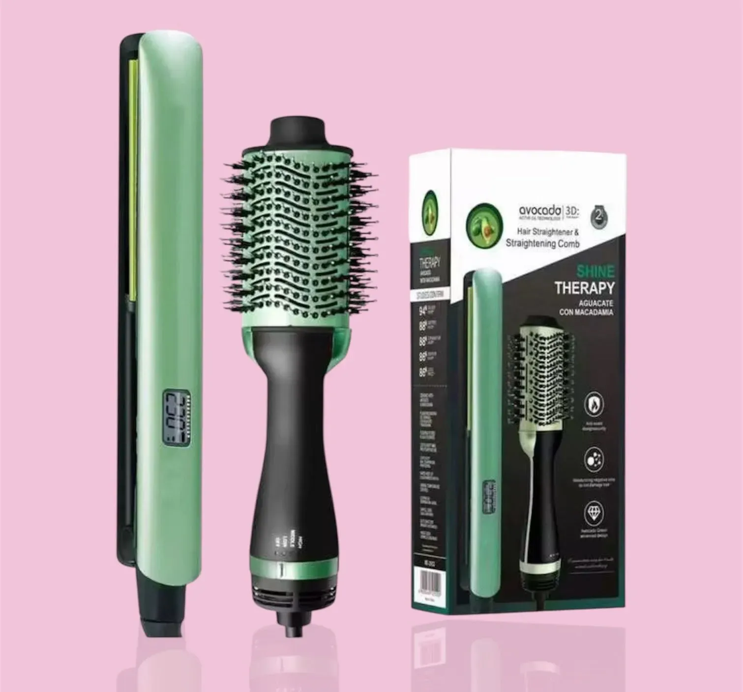 Kit de cepillo secador +plancha de aguacate y macadamia